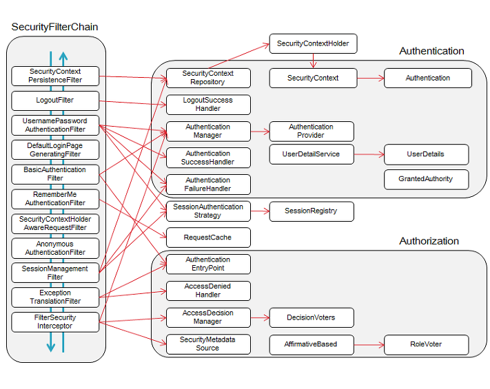 | SecurityContextPersistenceFilter | SecurityContextRepository 에서 SecurityContext (접근 주체와 인증 정보) 를 가져옴 |
